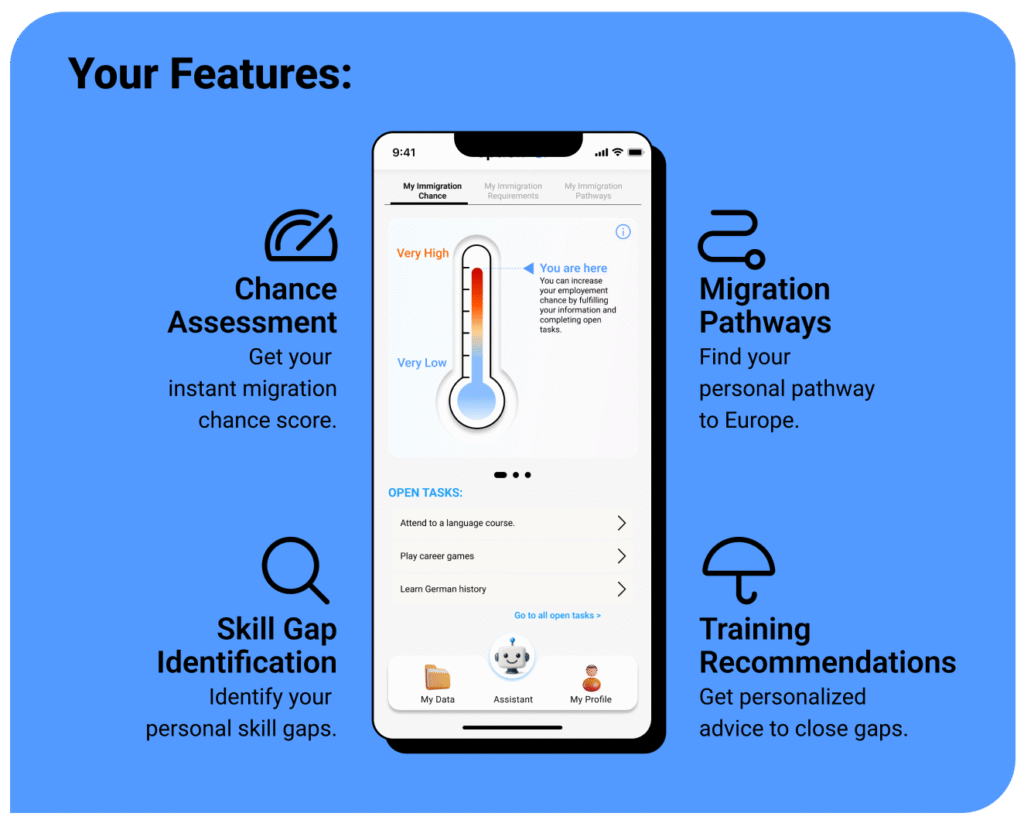 At the moment, we only help you find a legal way to immigrate into Germany as a professional. But in the future, we want to offer our services throughout Europe and develop them further. The plan is to connect you with service partners who can help you with your entry into the country, such as law firms and NGOs that can assist you with the immigration process.